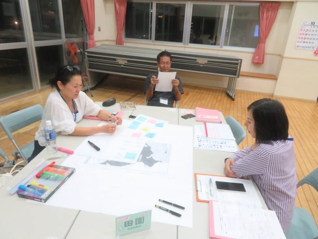 業務スーパーやサンエー、90代の地元の方が営む金城商店など、人が行きかう場所で出会う方に①大謝名在住期間②公民館を知っているか?③地域と繋がっているか?繋がりたいか?等、シールを使ってヒアリングを行う。
