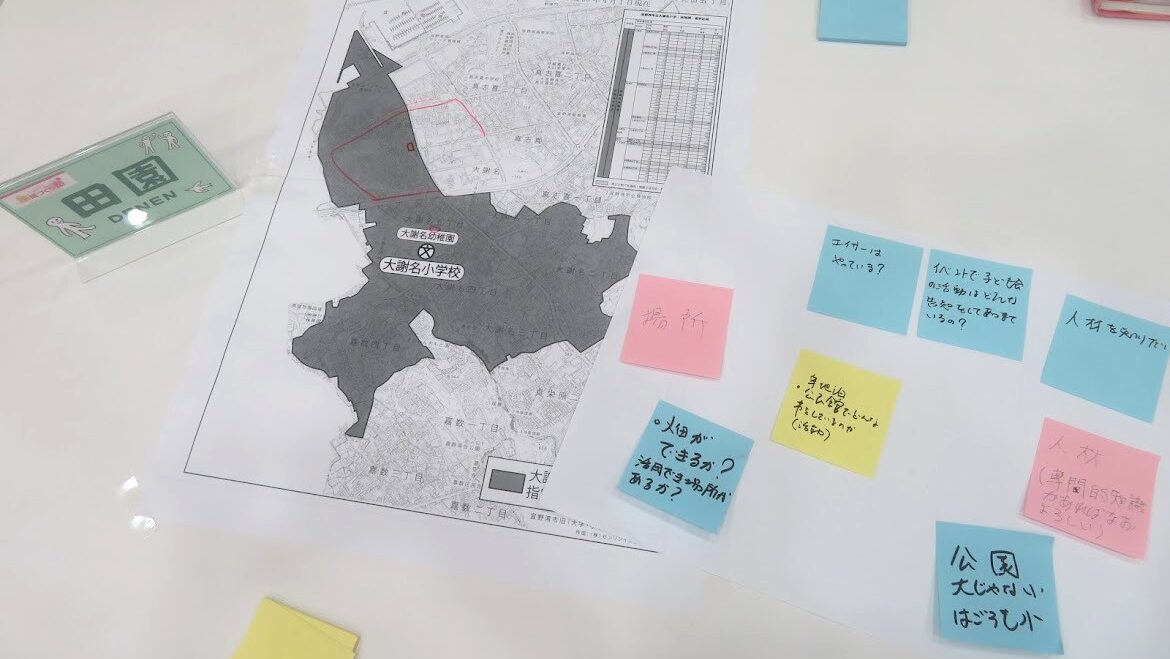 第5回ゼミ・チームで企画づくりでは、前回までの講座で学んだことをふまえ、チームで取り組みたいことをより具体的に掘り下げて、テーマに沿って得たい情報を書き出すというワークと、次回の講座「フィールドワーク」に向けて、どのルートを歩きどういった情報を得るか?等、それぞれのチームで話し合いを行いました。