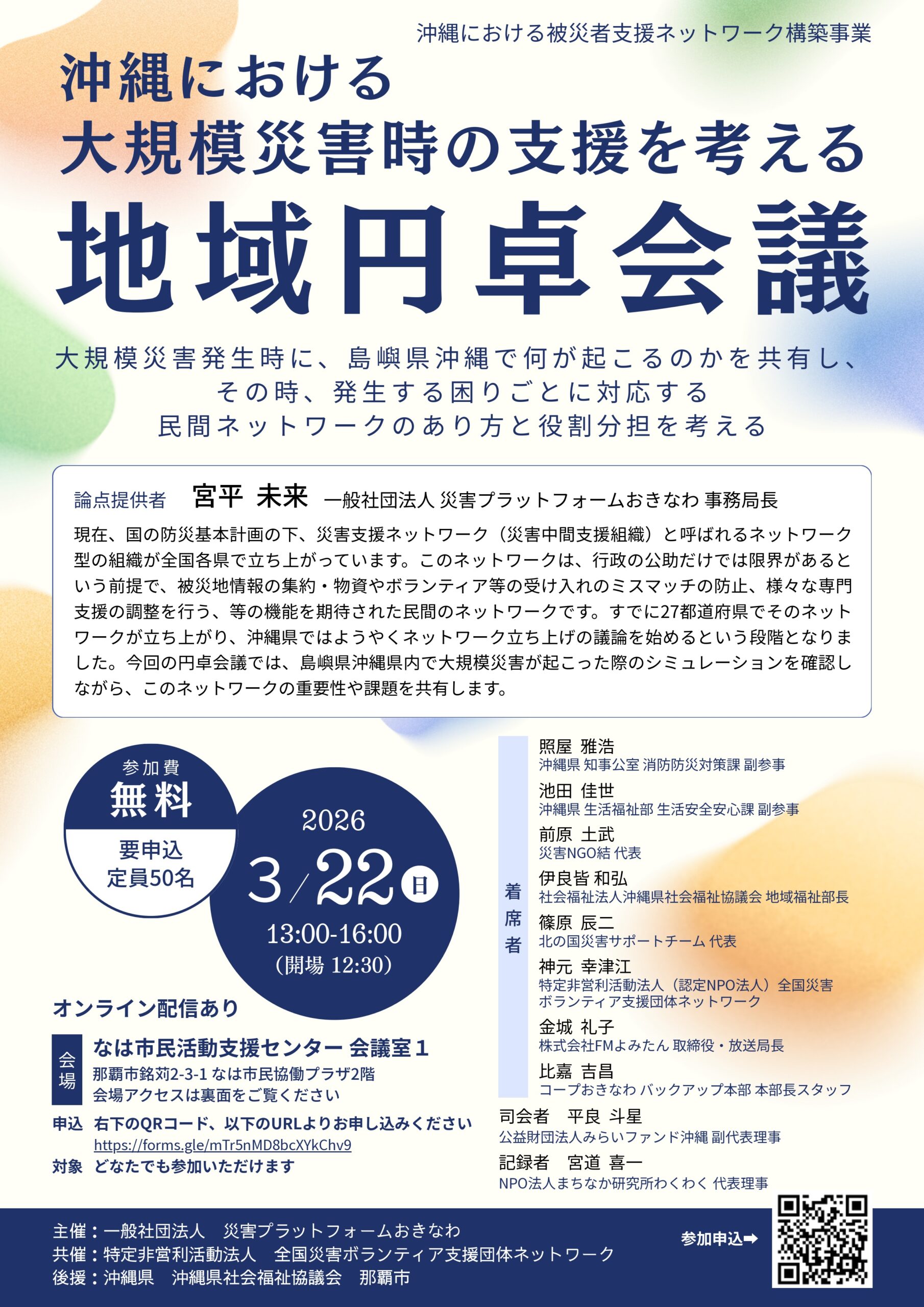 ダウンロード➡ 沖縄における大規模災害時の支援を考える地域円卓会議_チラシ.pdf