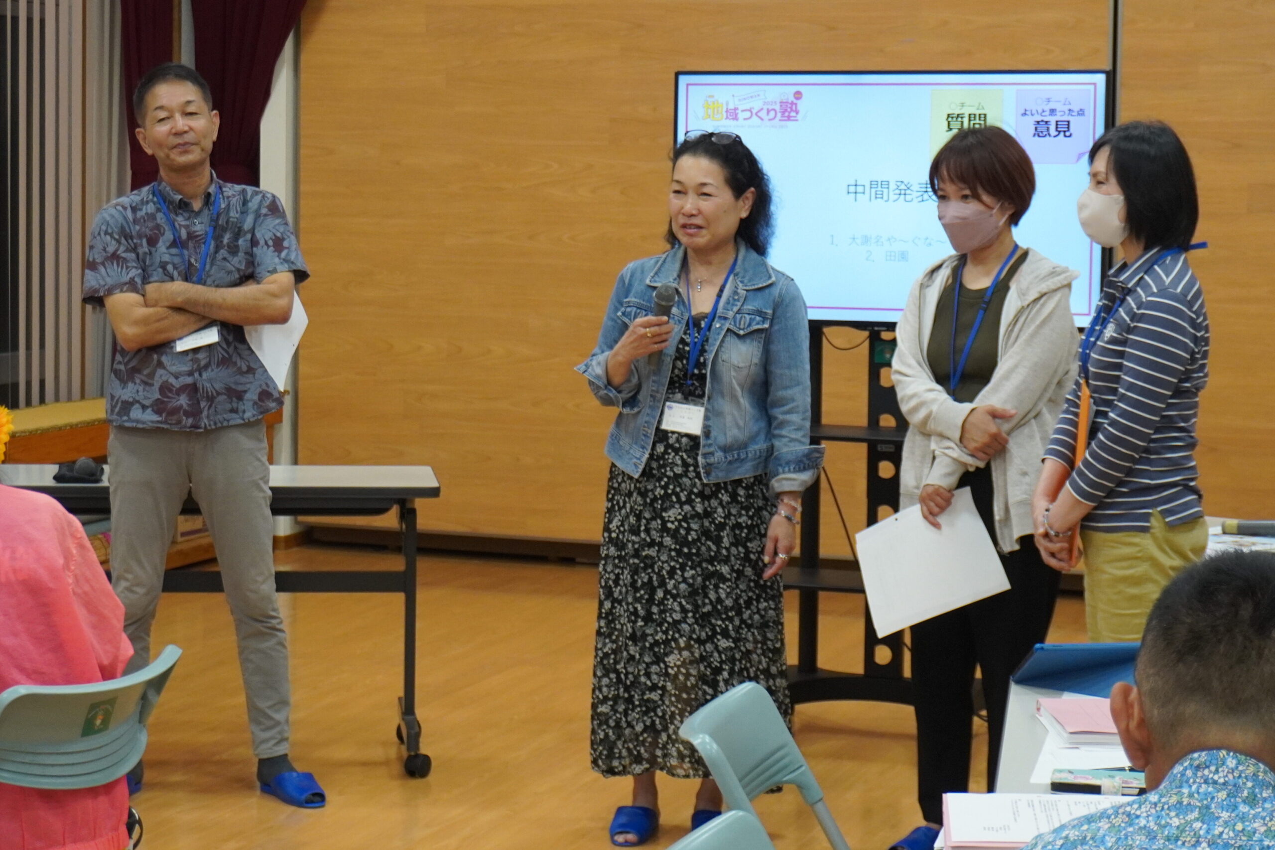 今年度、地域リーダー等養成講座「ぎのわん地域づくり塾2025」では、10名の塾生が「大謝名小学校区」をフィールドに学びながら、「地域で集える場」をキーワードに企画づくりを行ってきました。そして、いよいよ11月16日に最終発表が行われます。