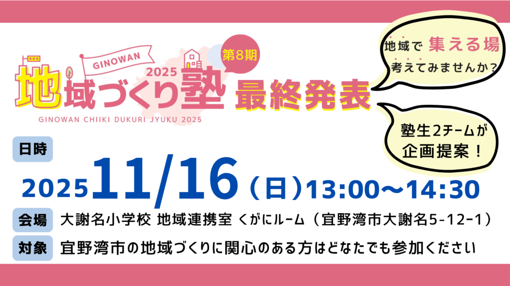 ぎのわん地域づくり塾2024最終発表 参加者募集!