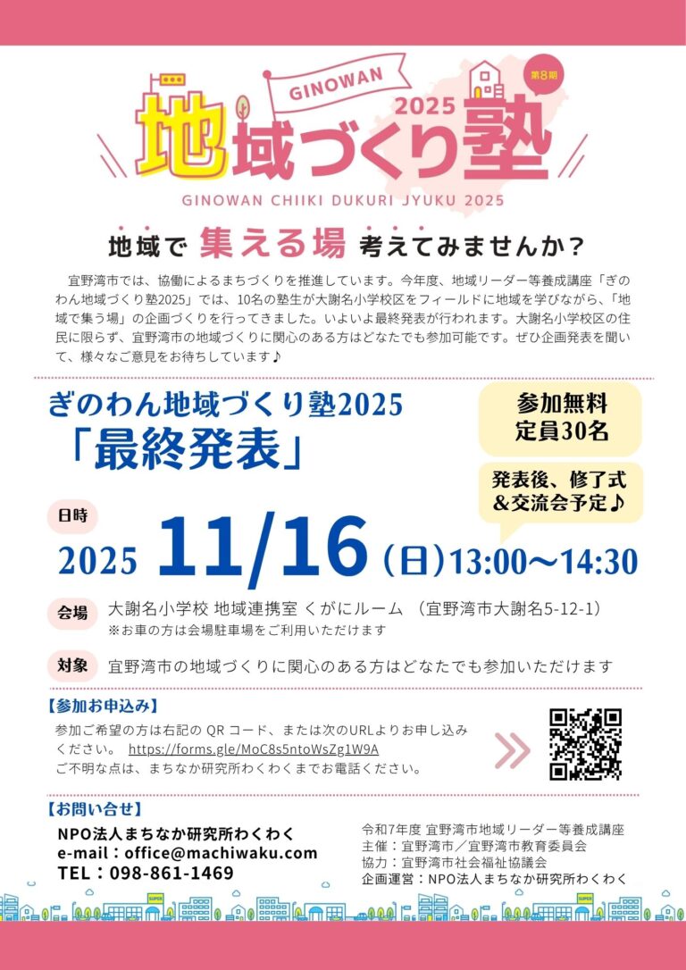 参加者募集!11/16(日)ぎのわん地域づくり塾2025 最終発表